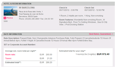 By the time we land, pick up our bags, go through customs, and catch a ride from the airport to the hotel, we should have little time left before check-in. I want to stay at the W hotel in Barcelona because it is close to both the water and the sea. We would also be able to choose which view we want from our room. Obviously we are going to choose the beautiful and serene water view!